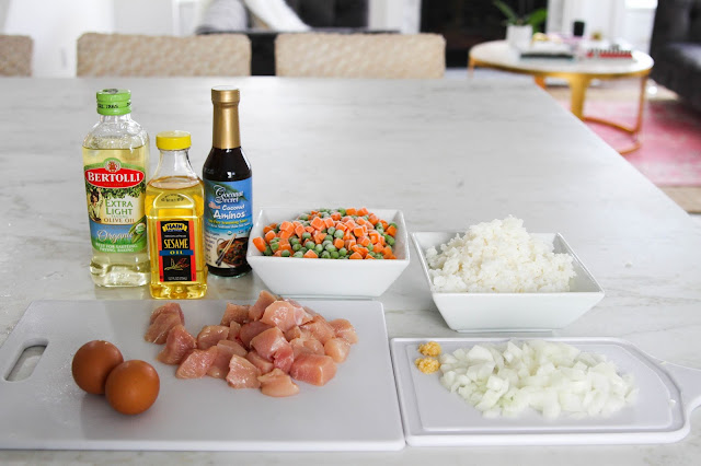 Happy hump day!! I wanted to share this super easy, gluten free chicken fried rice that I made last week. Everyone loved it, and it took no time to prepare or cook…and for me, that is a major win!