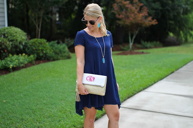 Dress // Tassel Sandals // Sunglasses // Clutch // Earrings // Necklace