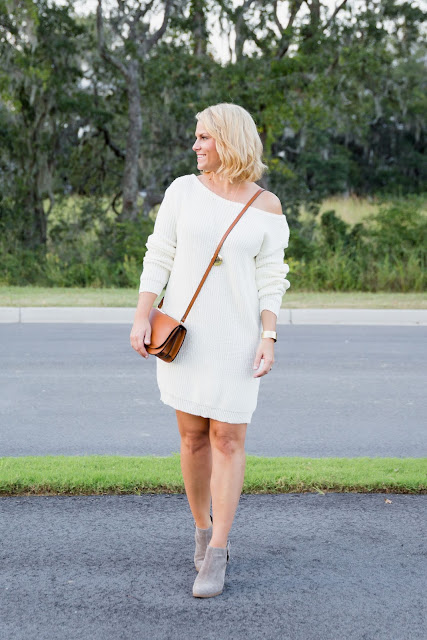 I paired my new booties with this oversized sweater dress, but they would also look so cute with jeans and leggings.