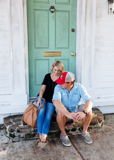 I would like to apologize for the picture overload, but I have to share these last three with you. They are my new favorites of Todd and I together. They were total surprise shots, as Todd had no intentions of getting in any pictures, but Kim loved the way Todd looked sitting in front of these steps so she told me to quickly jump in next to him. I love how handsome and laid back he looks in his baseball cap while drinking his favorite, Blenheim ginger ale.