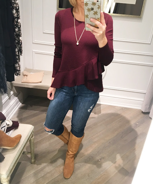 And last, this blouse was my favorite of all, and it was on sale !!! They didn’t have it in the black at the store, so I promptly ordered the black when I got home. And for sizing reference, I’m wearing the 0, and I found it to run tts.