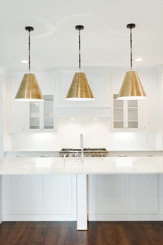 I can’t remember if I’ve mentioned it or not, but I ended up going with mixed metals in our new kitchen. I went back and forth, but I finally decided that I really liked the look and character it brought to the room by mixing the brass and the chrome together. That being said, now I can’t decide what kind of counter stools to use. I really want some with a touch of brass, but the only one’s that I’ve found that I like are almost $500 apiece here and here !?!? So, if any of y’all come across any please let me know! And here are a few kitchens with mixed metals that I absolutely love, and that I used as inspiration.