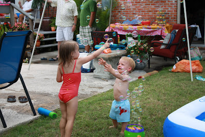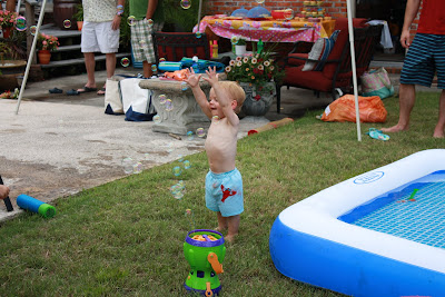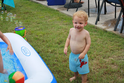 Sunday Todd, Carson and I had Carsons first pool party! It was so cute 🙂 Carson had a great time!! He wasn’t to sure about the pool, but he loved the bubbles and the watermelon 🙂 They had the cutest decorations and cupcakes to die for!!! I took a little bite of Carsons and my mouth was watering for more 🙂 Happy birthday Marin and Kaylin, and thanks for having us for such a fun party!!!!