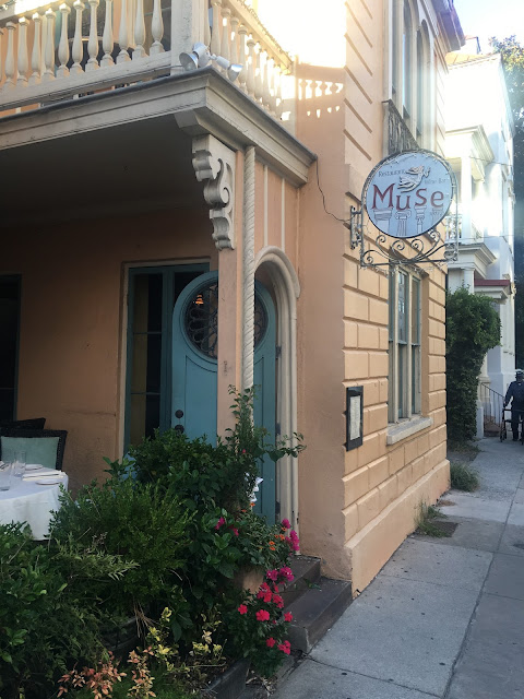 // Todd lined up a sitter and dinner plans yesterday, but he wouldn’t tell me where we were going. And I’ve got to admit, when we pulled up to Muse I was completely surprised. Not only had I never eaten here, I had also never heard of it! Todd went on to let me know that he had done his homework and that Muse was voted top ten most romantic restaurants in Charleston, while also adding that it had great reviews. That being said, I am happy to report that dinner was incredible, as were the drinks and the dessert.