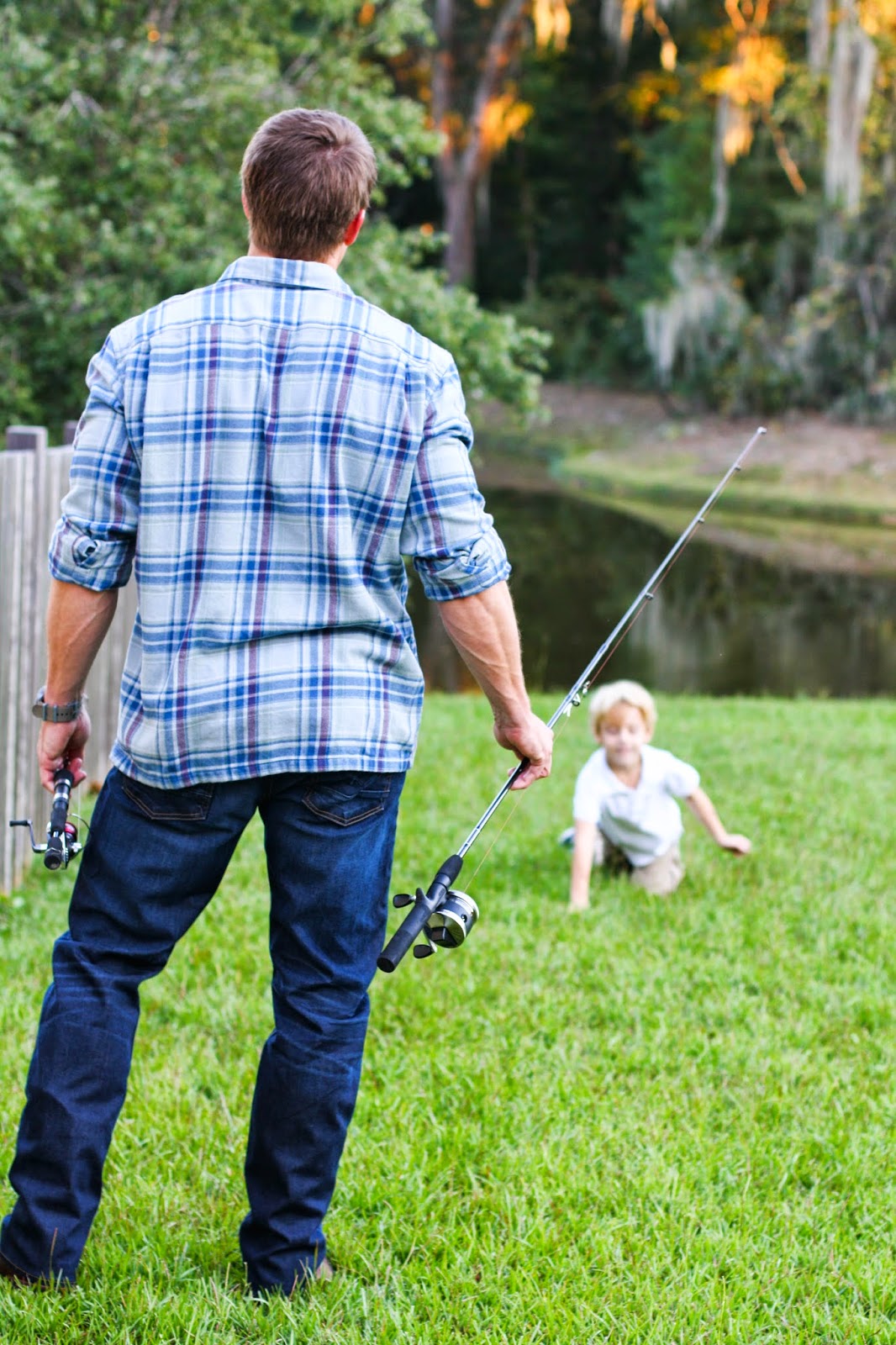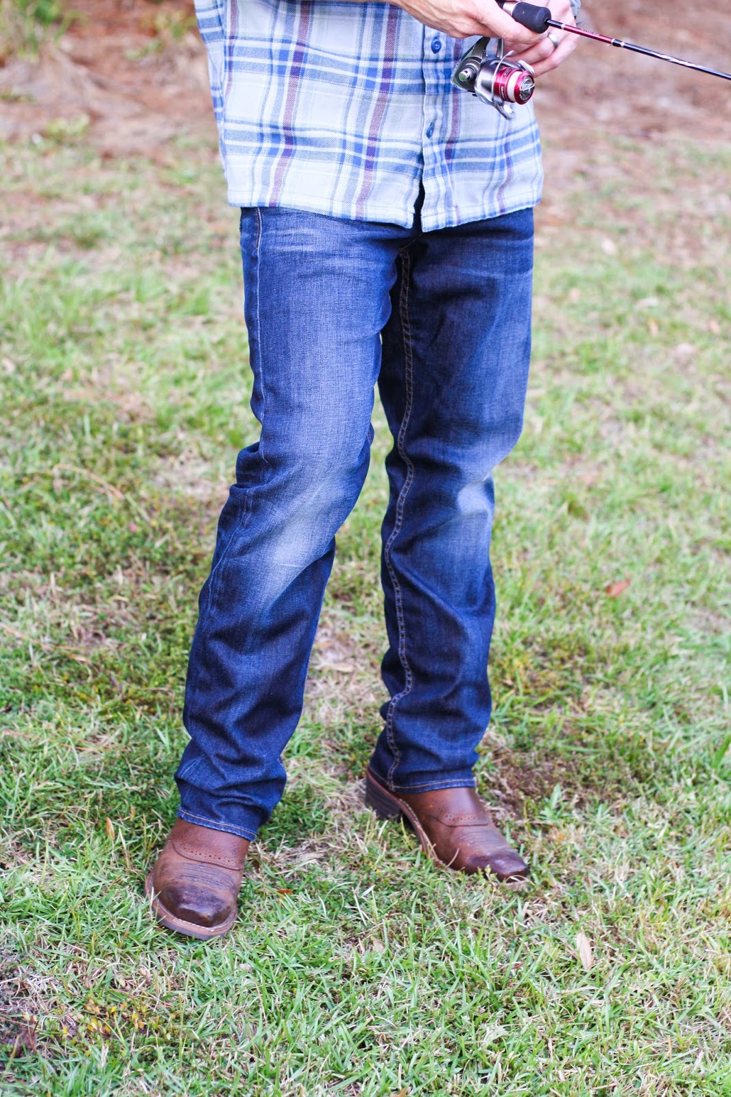 Y’all, I know that title is totally goofy, but it’s the best I could come up with. When I asked Todd if he would mind modeling his jeans for me, he laughed and said, “Nah, I’ll pass!” Then, I told him I would throw in a nice shirt, boots, and I would pay for dinner. Yeah, he changed in mind pretty quickly ha! But, he said he would only do it if he could do something he enjoyed doing while I snapped the pictures. The rules were: I am not standing alone posing, I am not giving you any awkward smiles, and I get to fish. Hey, I’ve worked with more difficult requests in my life 😉