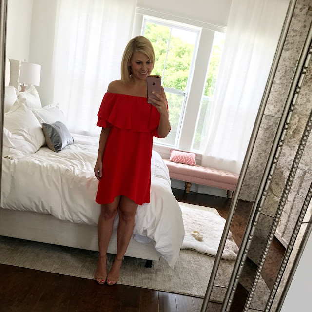 // One of my favorite off the shoulder dresses just came out in a beautiful pink, and also in a pretty blue color!