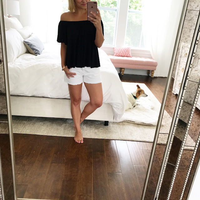 Off the Shoulder Top (only $25) // Shorts // Stamped Bracelets // Earrings