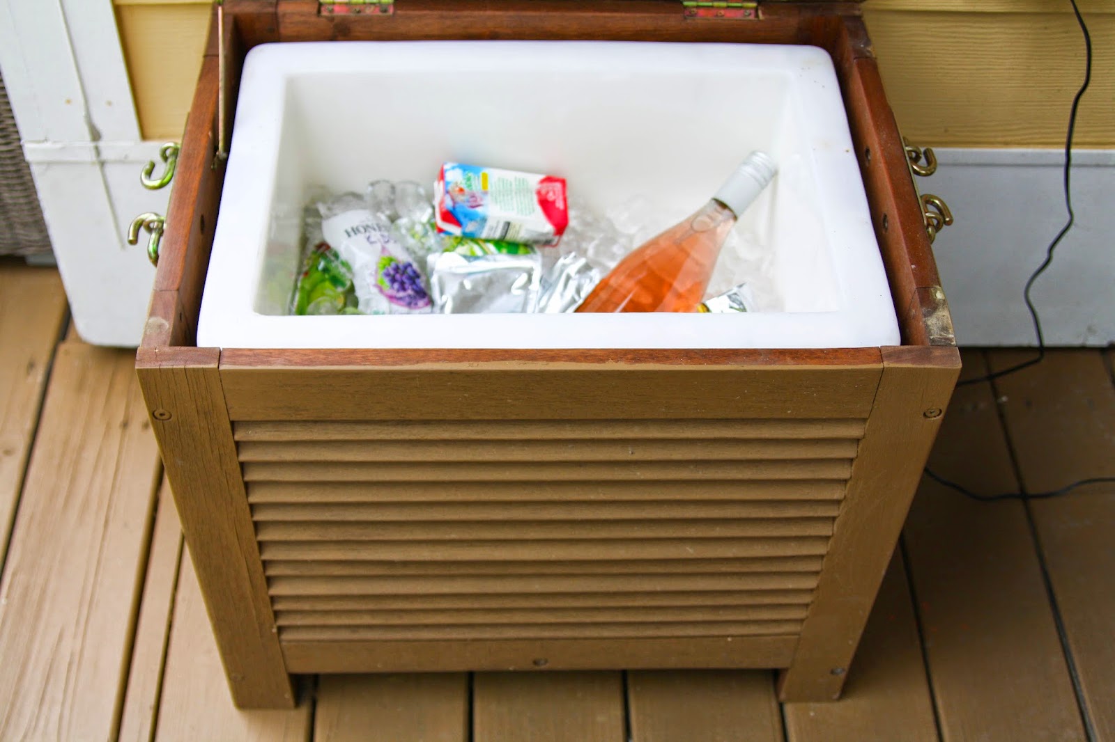 We have had this wooden cooler now for almost three years, and it’s pretty awesome! It looks like a nice wooden table, but opens up to a very spacious cooler!