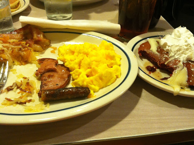 I mean we really ate! I decided I had a tape worm this weekend. No joke I think I ate 6 meals a day 😉 The below picture would be what I had at 3:00 in the morning on Saturday! Yes those are red velvet pancakes, and yes they were amazing!