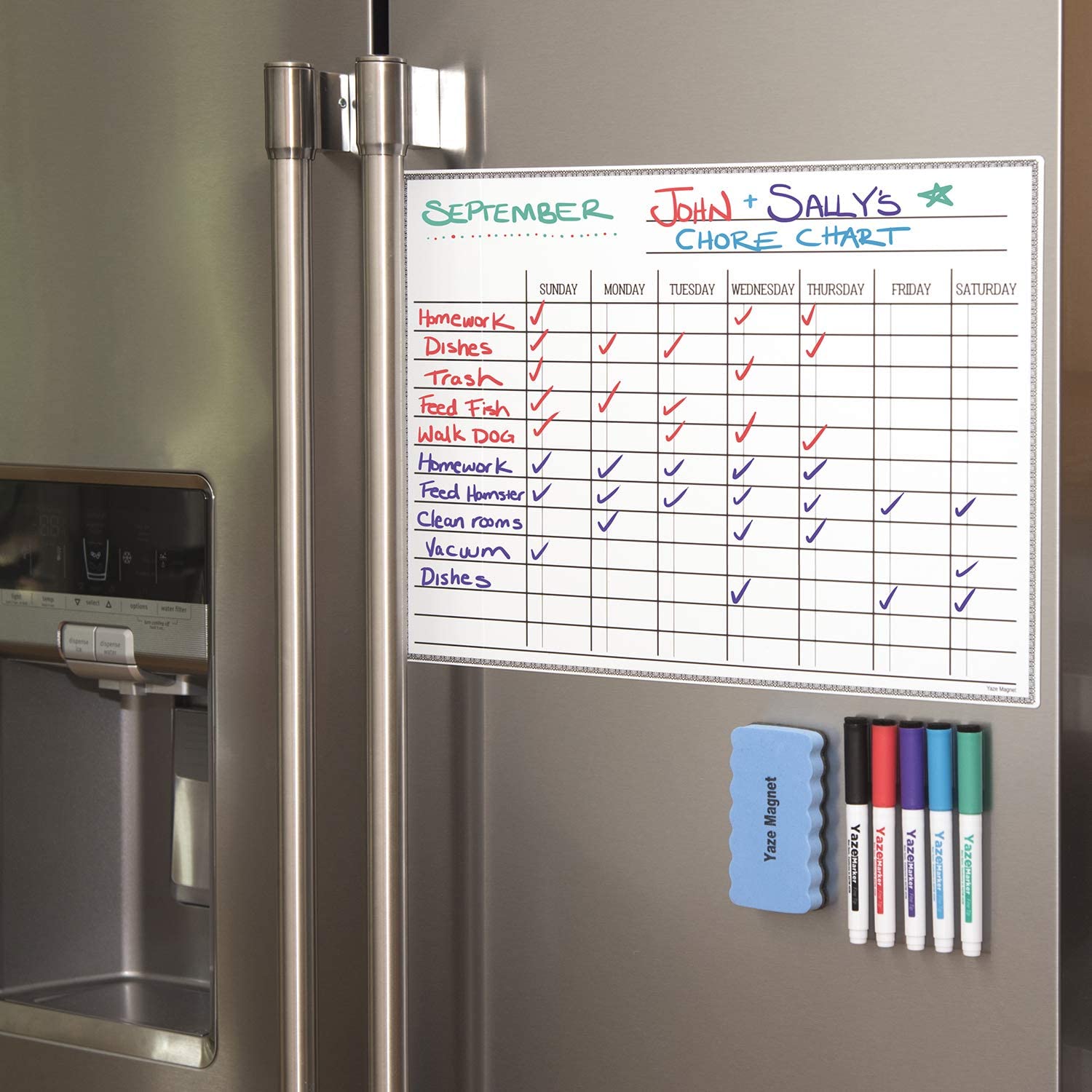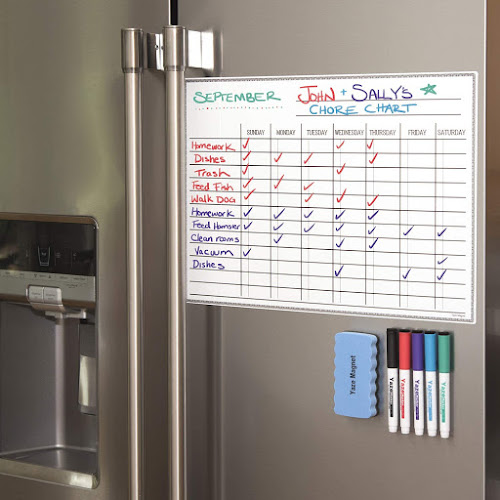 You guys may remember that I ordered a similar chore chart like this last year for the kids, and while it worked great for a while, the black color was hard to read with the markers and it didn’t fit on our refrigerator where the kids could reach it. That being said, when I saw this white one that was not only the right size, but it also came with five markers and an eraser for $21, I decided to order it! And let me just tell y’all, it has been AMAZING in our house, as far as getting our kids to help out and learn how to start doing chores and everyday tasks on their own.