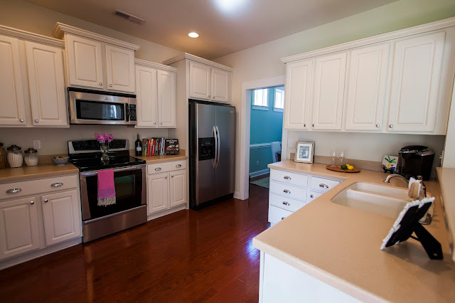 I moved into my house 4 years ago and loved everything but the kitchen. I had the cabinets painted a light blue, put in all ss appliances, added a tile backsplash and put in granite countertops and extended my island a little for seating. I was reading your post and thinking we just did the exact same thing. Anyway it is a quick and easy fix and now I love my kitchen;)