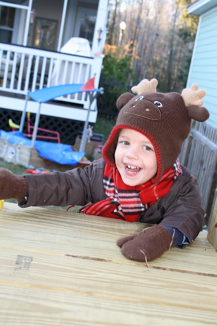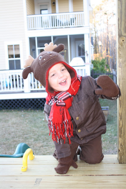He is a doll! And I love his hat. Harper has a moose hat too. But he likes to pull it off as soon as I put it on. 🙂