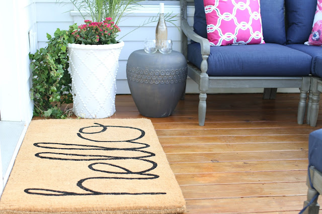 // And last, but not least, here’s a little peek at our new deck spruce up with Grandinroad! I will be sharing everything with all the sources later this week. And I know a bunch of you wanted to know the color of the stain we used…it’s called Cedar Naturaltone by Behr.
