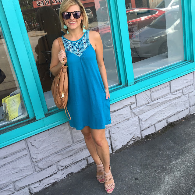 Woven Shift Dress // Earrings // Hobo Bag // Sandals (on sale)