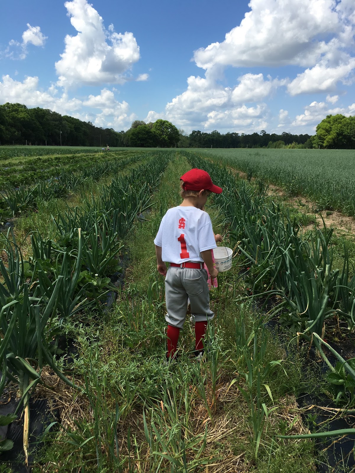 // After Carson’s game, we headed out to do some strawberry picking. We were planning on going to Ambrose Farm, but on the way there we passed this small, private U-pick strawberry farm. We decided to pull in and check it out! I am so glad we did. We pretty much had the place to ourselves and the strawberries were beautiful! The owner was so kind and told us how they don’t use any chemicals and to please eat as many as we wanted while picking them. You better believe the kids were in heaven. They both LOVE strawberries, and these were so sweet and juicy!