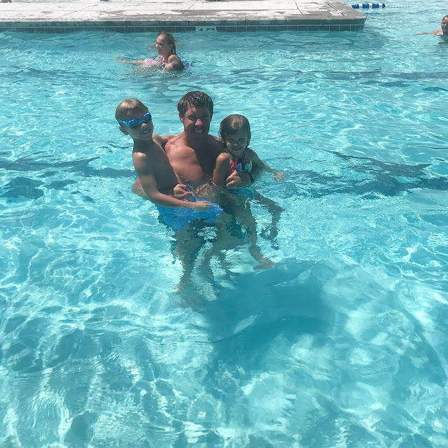 // After our long bike ride we were all hot so we decided to hit the pool. The water felt great and I had so much fun goofing off with these three.