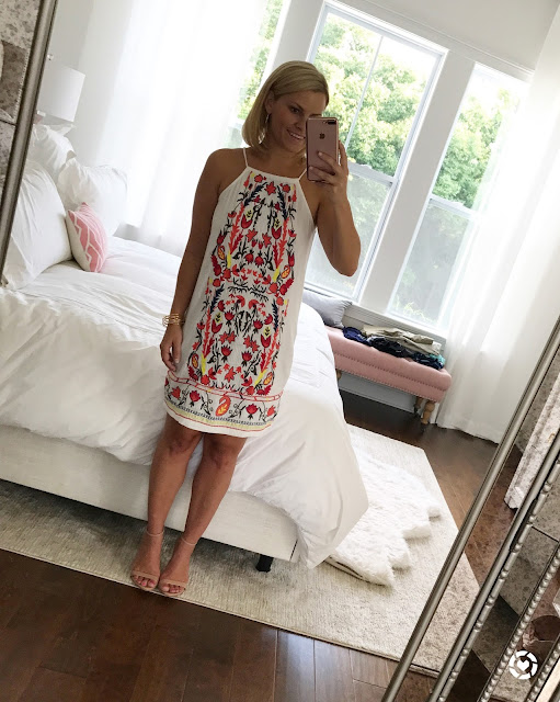 // I ordered this pretty embroidered dress last week and I cannot get enough of it! The material is a nice weight and not see through at all!