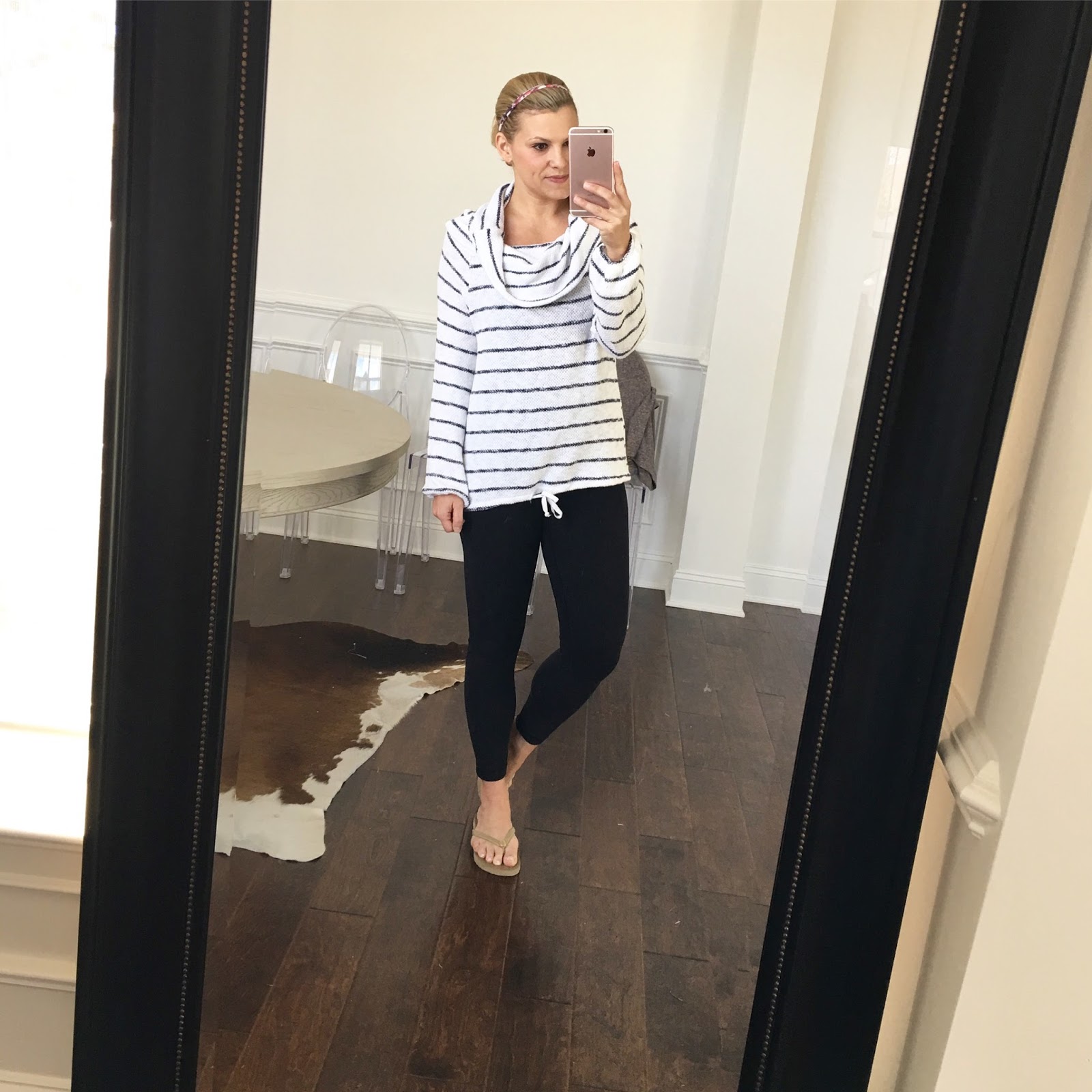 // And last, I wanted to share this terry convertible pullover that I wore yesterday. It is so comfy, and I love that it can be worn a few different ways. A lot of the sizes in the stripes are sold out, so I would grab one now if you want it and happen to see it in your size! And for reference, its runs a little big. I’m wearing the xs petite.
