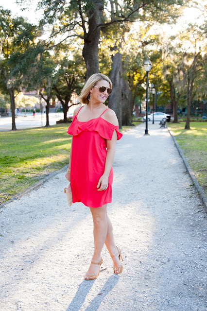 Now that I got that out, let’s discuss this adorable flutter sleeve red dress. The fit is just right, it’s not too tight, and it’s not so loose that it looks like you’re wearing a paper bag. The price is amazing at only $49.00, and it comes in two other colors. So yes, this is one of those dresses I highly recommend, and one you may want to grab in more than one color.