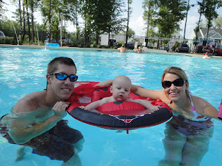 Well we have had a very fun weekend! Friday night we went to the river dogs game, and had a blast! Carson did not cry one time! (can you believe it) I think he really likes baseball haha! After the game they had a firework show, and he love that too! He was so amazed. We took some really great pics, but I lost my camera 🙁 sad know! But thats ok we had the pics saved except for the ones we took Friday night. I went first thing Saturday morning and got us a new camera I heart it by the way 🙂 Saturday Todd and I did some things around the house (hung curtains in upstairs living room, and painted furn) Fun stuff let me tell you. After that we went to the pool! Once again Carson was sooo sweet, he loves the water 🙂 He went down a 8 last night and did not get up until 6! Can I get a Amen on that one:) We had a wonderful time at church I begged Todd to wear our matching outfits (and he did) I love that man! I thought they were soo cute and we got lots of compliments. Carson I hope that you stay in this wonderful mood you have been in we LOVE it.