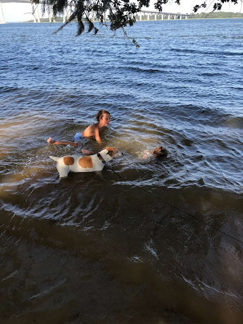 This was Taylor trying to teach Rocky how to put his head under and swim…haha!