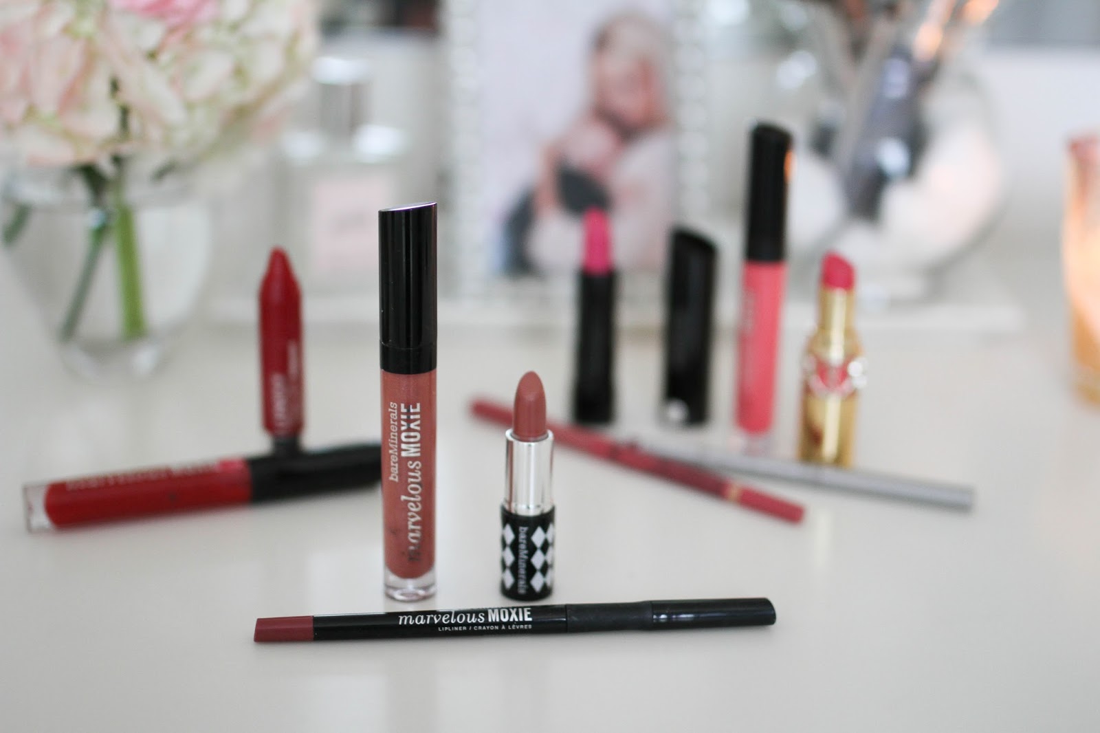 Pinks-  Lipstick one (pink in devotion) // Liner One (crushed berry) //  Lipstick Two (never say never) // Liner two (perfect pink) // Gloss (hot shot)