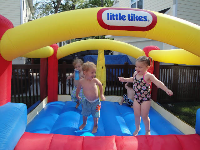 On Sunday Todd and I got some things done around the house. I finally recovered my chairs, and changed out the art work in the breakfast area!( Pics soon) Then when Carson woke up from his nap we headed to the neighbors for a cookout! Have I mentioned that I absolutely adore our neighborhood, and adore the people even more?? Well I do, so so much! Check out the cool water slide Lauren had set up for the kids! It was a huge hit, and the kids were worn out by the end of the night! I on the other hand didn’t make it back to our house until around midnight. Good thing its a short walk ha!