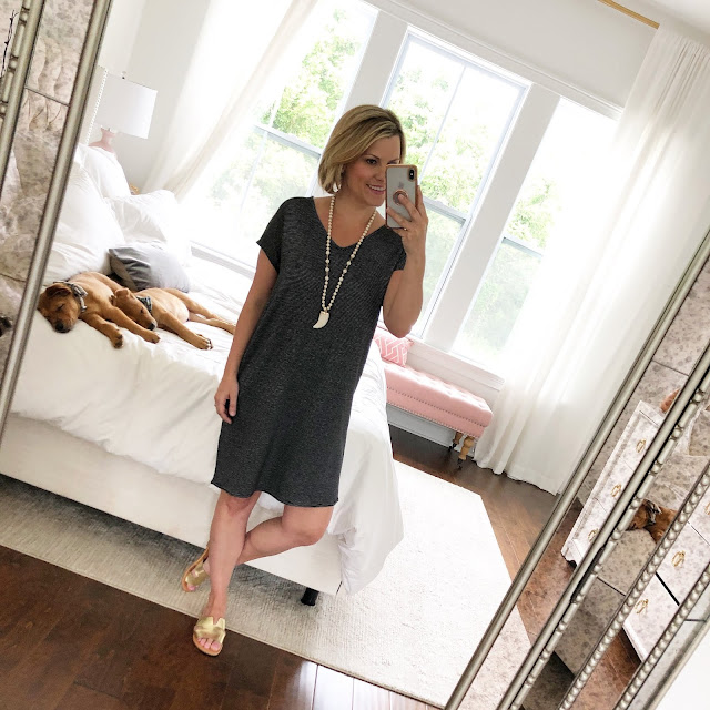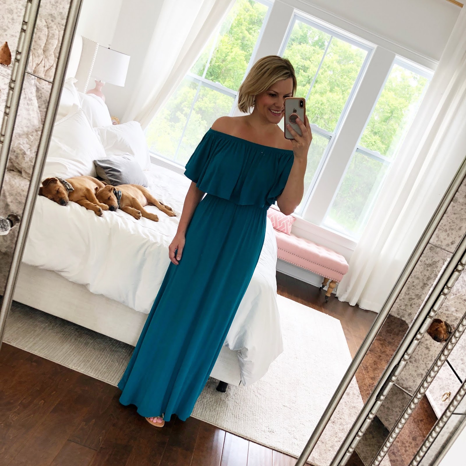 Dress runs a little loose and I’m wearing a small, but could take the xs.