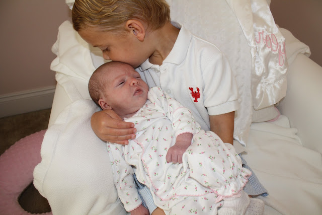 Congratulations, she is beautiful! The pictures of Carson holding her are just precious! What a sweet big brother he is!