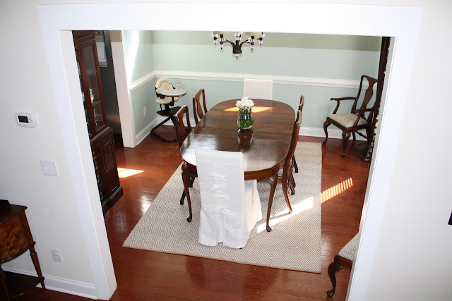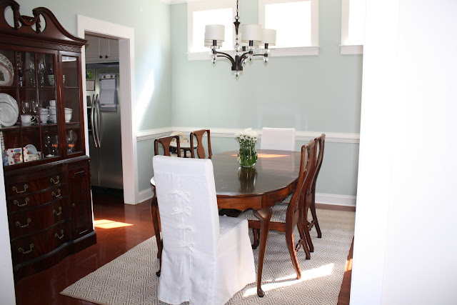 Perfect chair covers…and I think the rug looks great there. Also…those windows are so perfect for that space… love them.