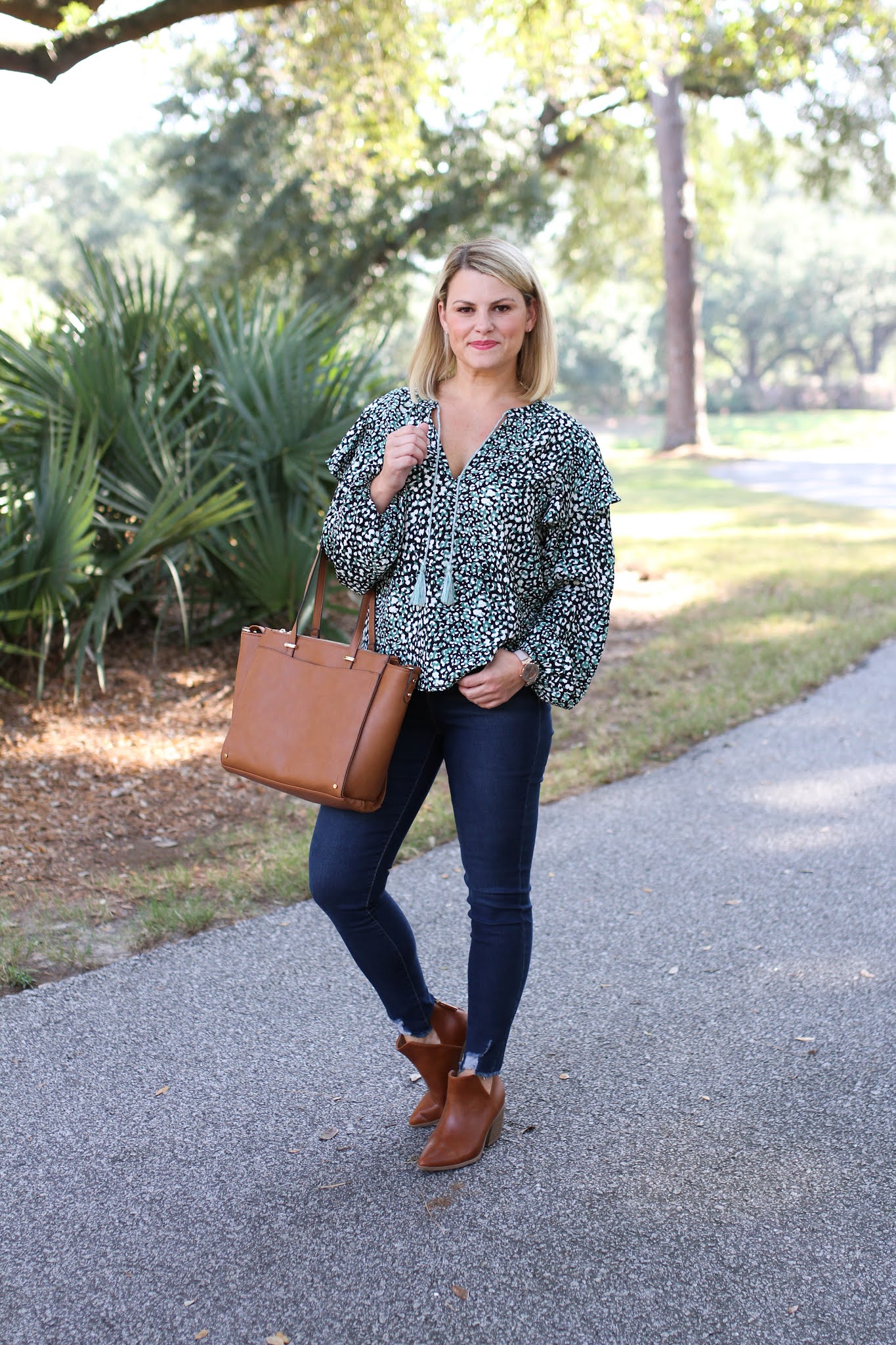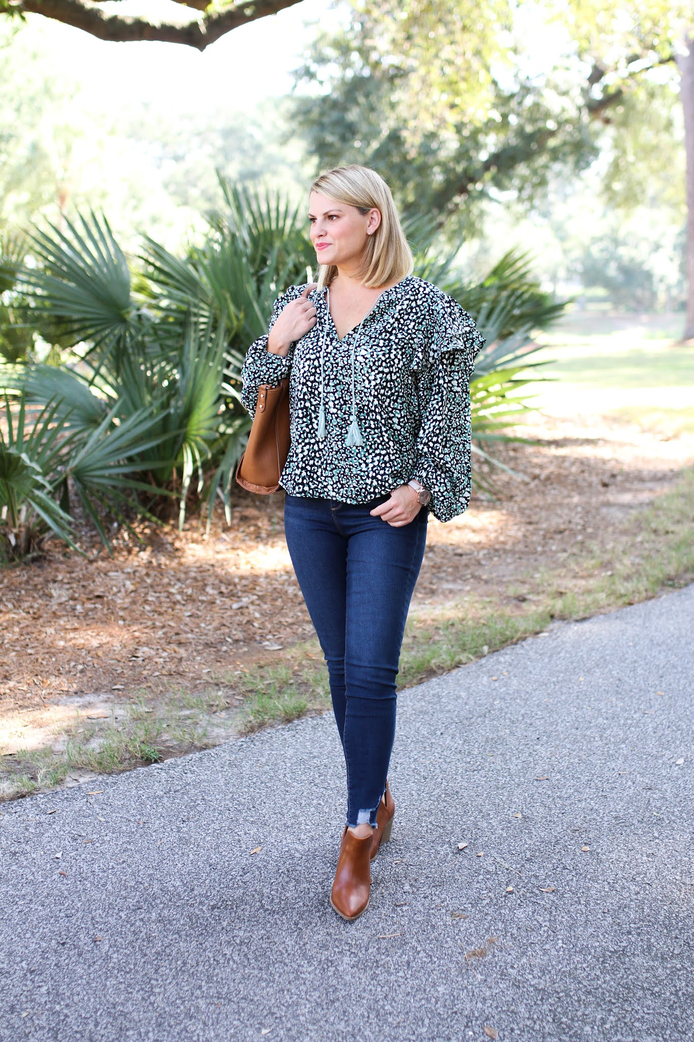 This blouse is even cuter in person and it also comes in two other gorgeous fall prints as well.
