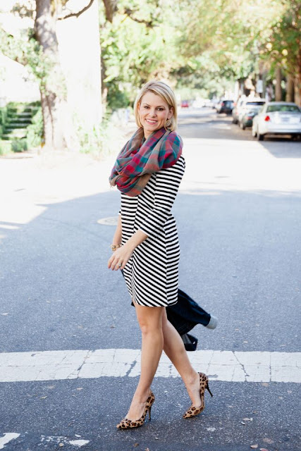 This little black dress (only $42.00 btw) is perfect for creating many different looks. It also comes in stripes here, and a fun pattern here.