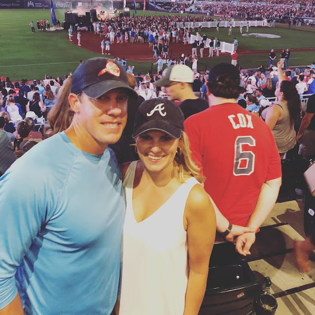 I’m not sure if you guys remember or not, but for Father’s Day the kids and I surprised Todd with tickets to a Braves game. Todd has been telling me for over eleven years now that he wanted to take me to a Braves game, so I figured it was about time I made that happen 🙂