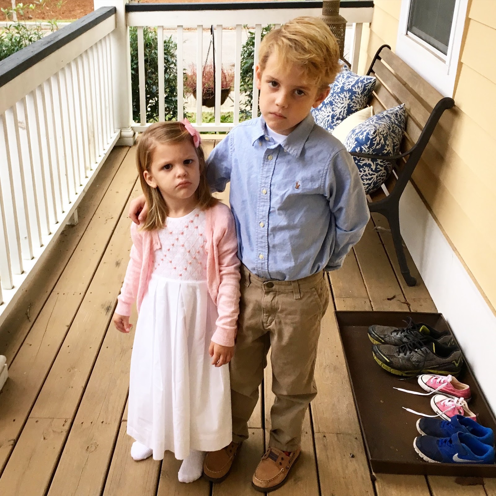 And you see how my two felt about getting all dressed up for the occasion! Bahahaha!! Carson was mad about his shoes, and Taylor just does whatever her brother does!