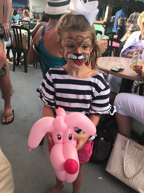 // On Sunday, we were lazy for most of the morning and through lunch. Neither Todd nor I can stand to sit around and do nothing for too long, so by 3pm we had to get out of the house. We decided to grab dinner on the beach at Coconut Joe’s. We saw that it was kids night with face painting and balloon making, so we knew the kids would have a blast!
