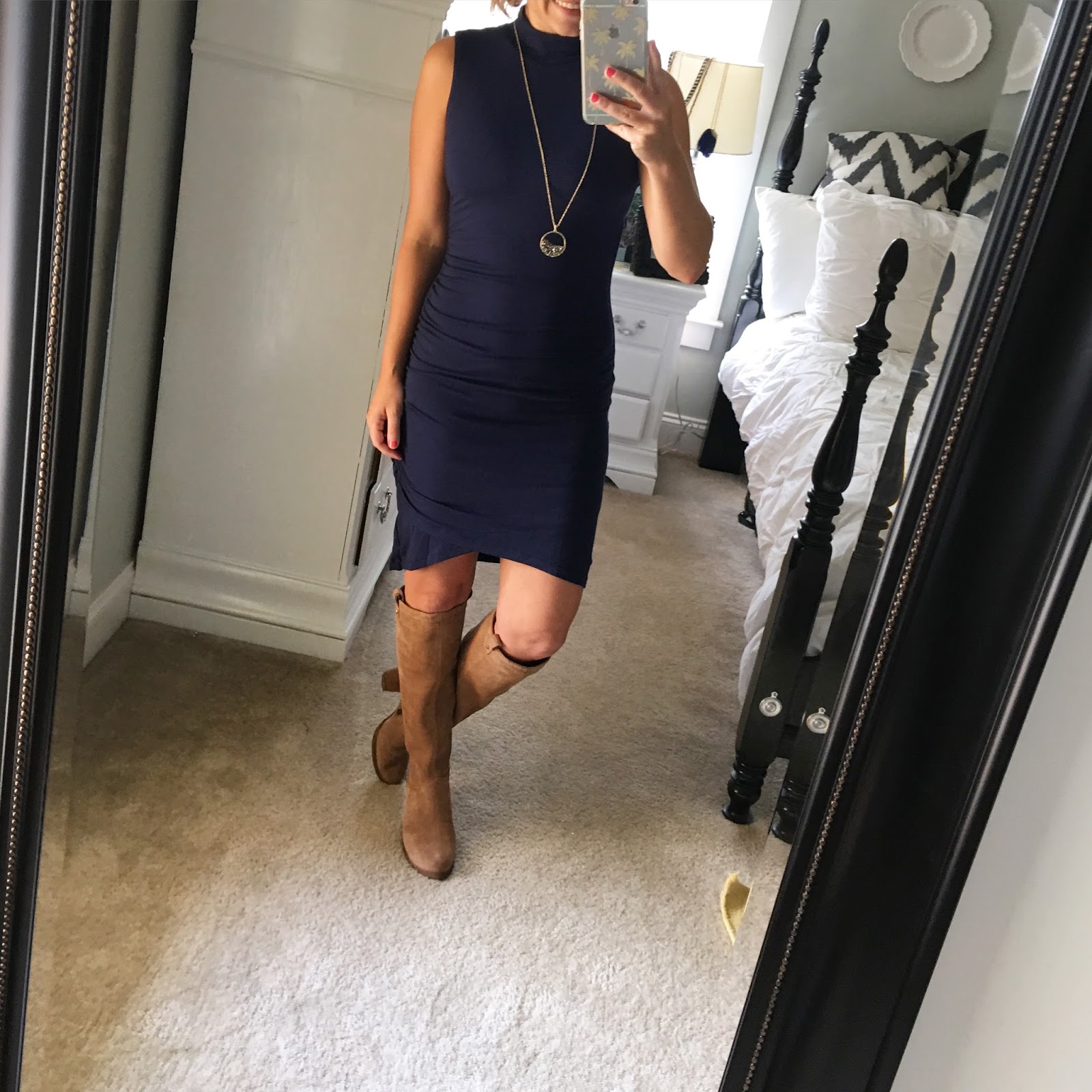 Loving this dress and how super lightweight it is. Perfect for now, and then perfect for fall with a jacket and knee high boots. It runs on the bigger side, so if between sizes go down at least one. For reference I am wearing the xs.