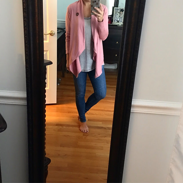 Fleece Wrap 40% off // Gray Tee // Jeans