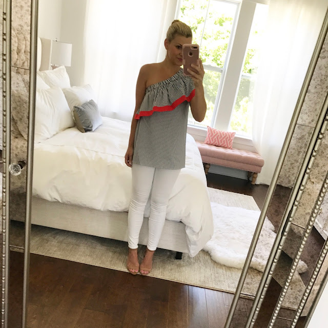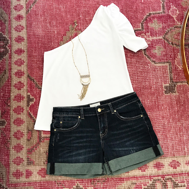 One Shoulder Top (only $35) // Jeans (only $42) // Wedges
