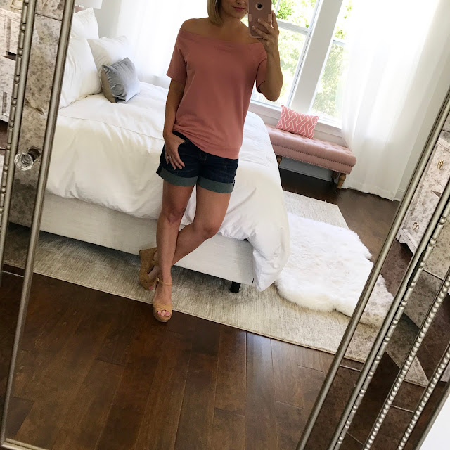 Off The Shoulder Top (only$35) // Shorts // Wedges