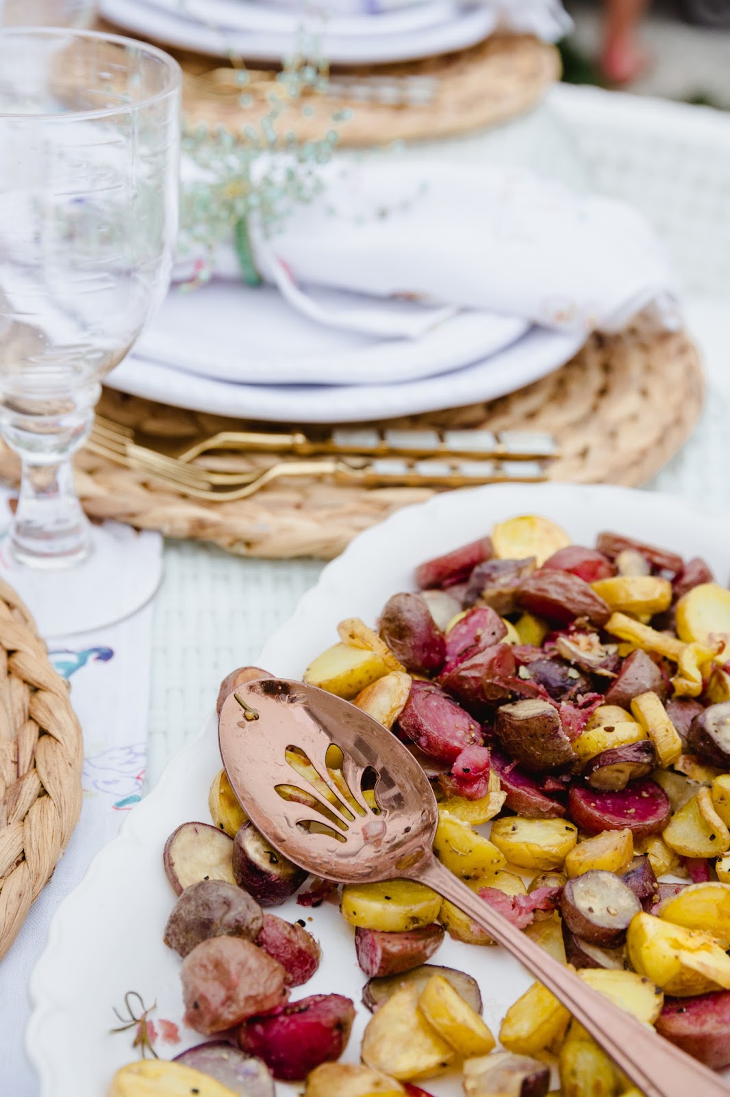Todd loves to grill and we both love to dine outdoors, so when we finally finished our patio (you can see that reveal here if you missed it) we wanted to make one of our favorite summer meals to break in our patio and his new grill right 🙂 You can never go wrong with grilled chicken, potatoes, and a salad…plus, it’s always fun to try out new recipes to spice up all three of these. That is just what we did, and all three turned out delicious so I thought I would share the recipes we used with you guys!