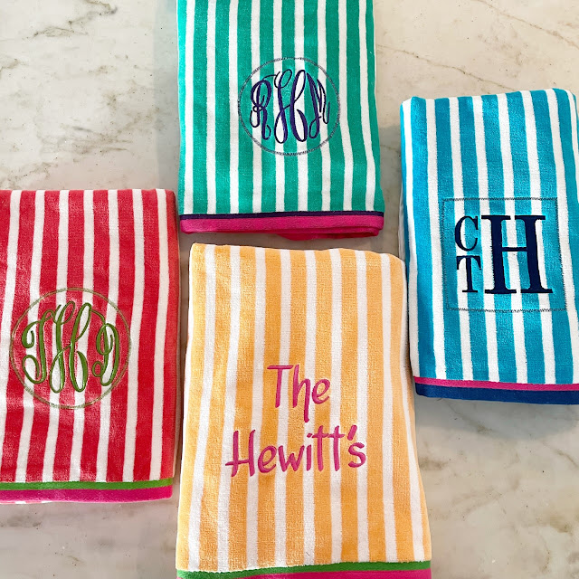 our new beach towels that I found on amazon!! They are super thick and I love the different color piping on them! And my favorite gal