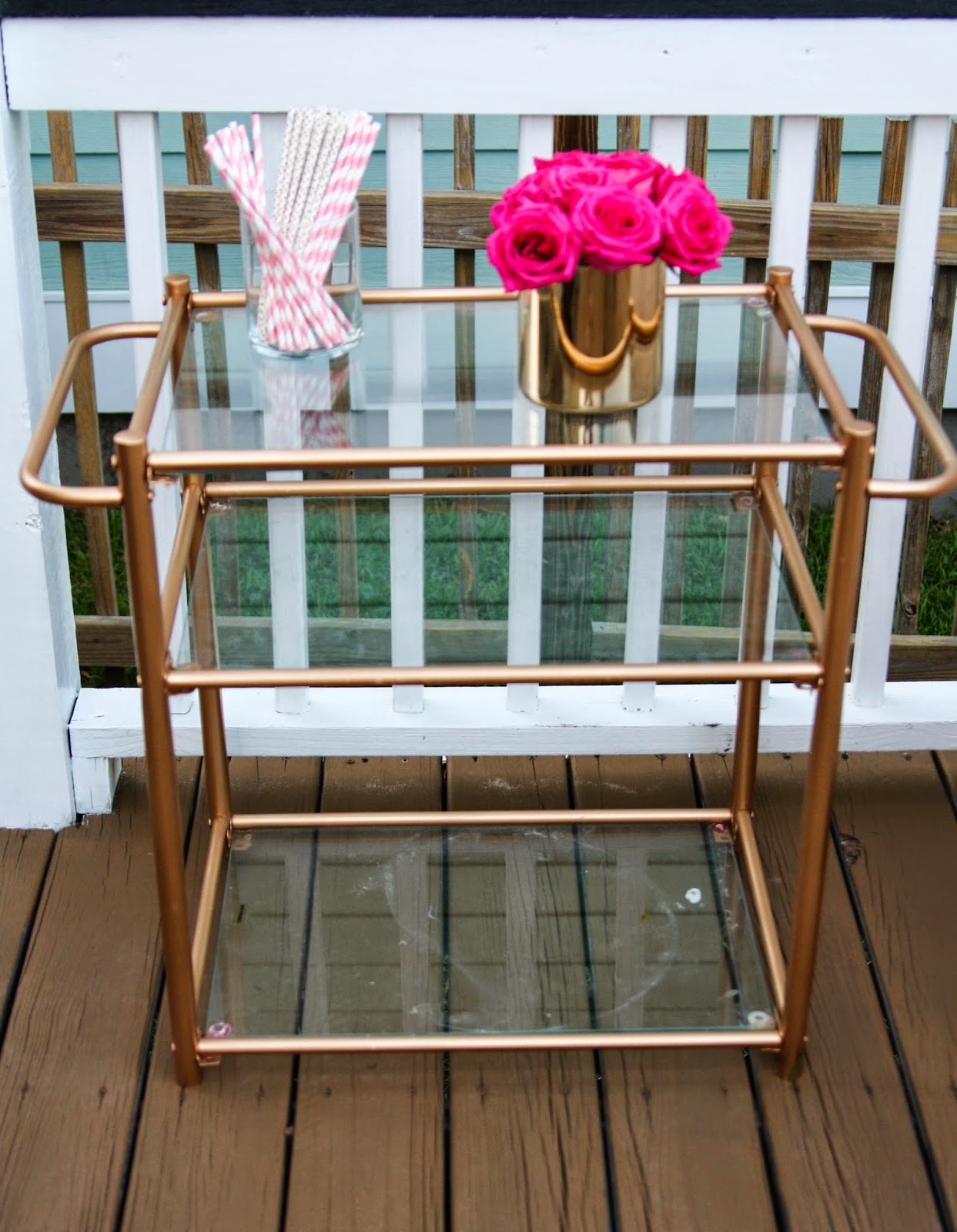 // Party planning is in full effect around here! Have I mentioned how much I LOVE planning a party?! Toss in a cute little pink pig, an adorable three year old, and it makes it that much more fun! Once again, my old bar cart I found on the street a few years back got another paint job 🙂