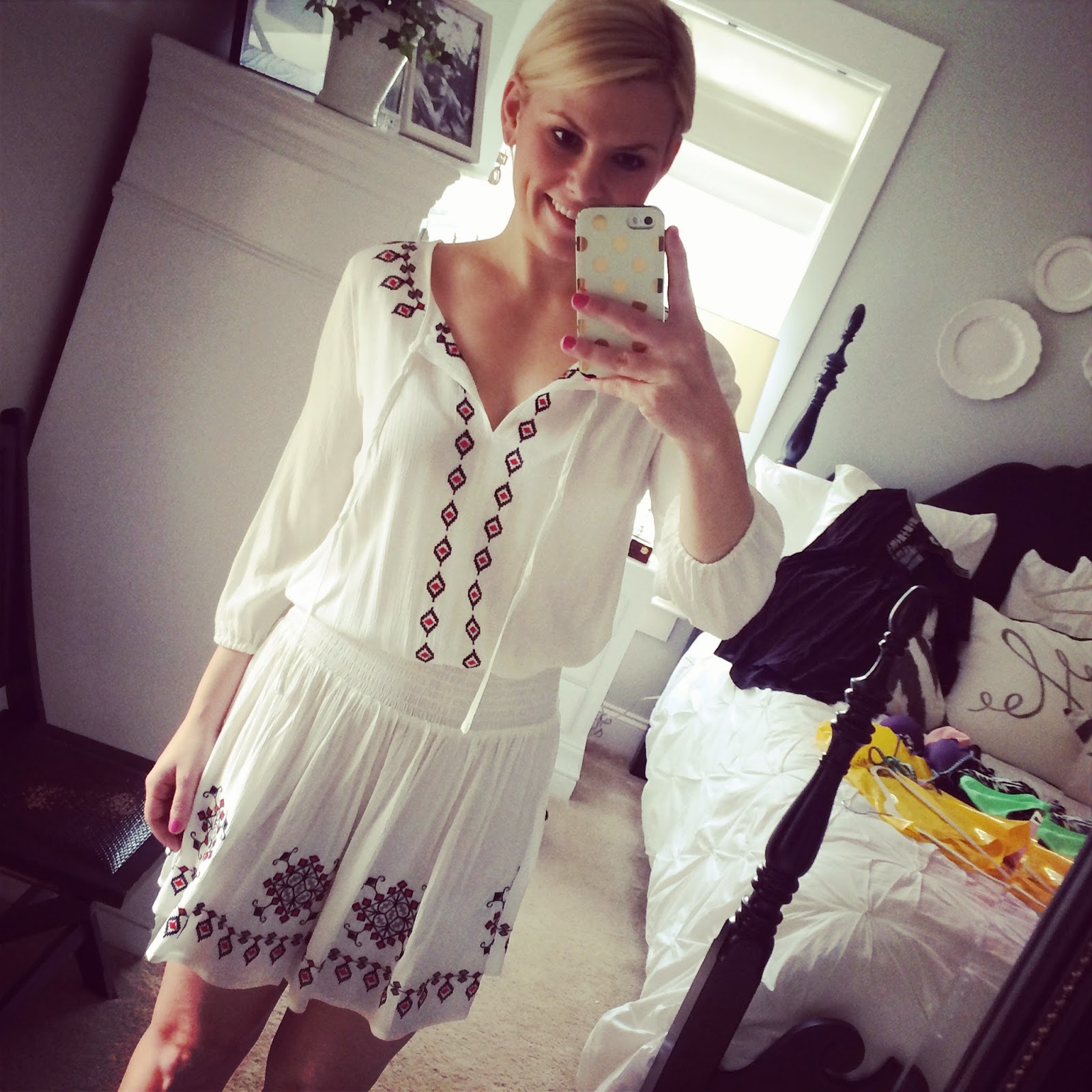 What size did you get in the white and red embroidered dress from Forever21? I am about your size but expecting, so totally unsure how to size in this! You look fantastic!