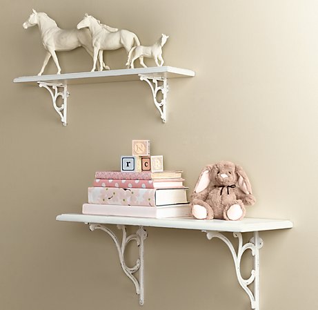 You guys would be proud, I have narrowed my colors down to 4 pale pinks! I have also decided on a mirror and chandelier for her room! And is it possible that I am already nesting or is it just my OCD personality? Not sure but either way, I am like a mad women wanting to get everything done! So I think I have decided to do shelves over her changing table. Holy choices batman, there are way too many out there, or maybe I just spend way too much time sitting on my rump looking at all of them 🙂 Here are my current favorites!