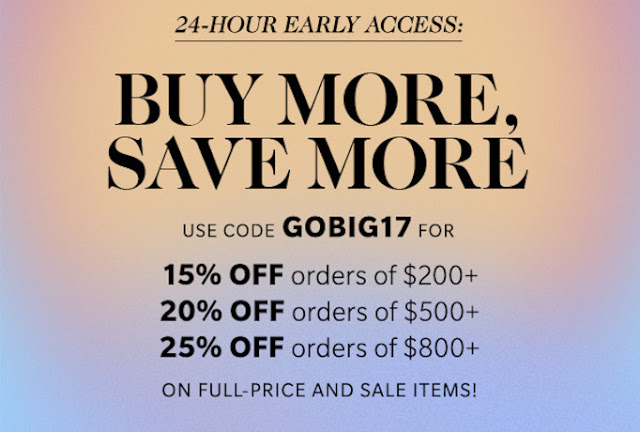 Don’t forget to use the code GOBIGH17 at checkout. And if you ordered anything within the past week, make sure you give them a call so they can adjust your total.