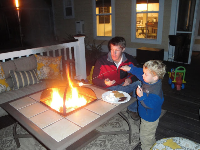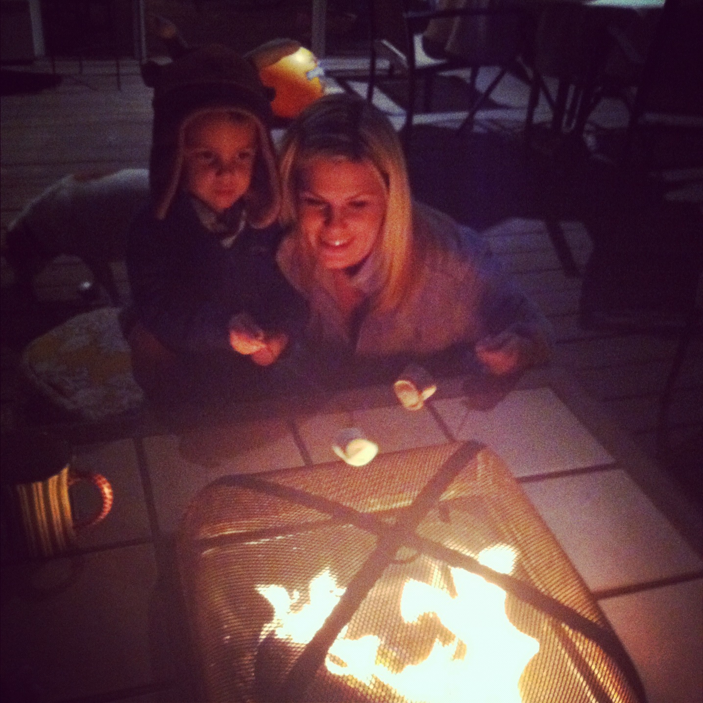 I would say hands down Carson’s favorite thing about the evenings come fall, are making s’mores by our fire. Boy loves a marshmallow, and of course he thinks it’s really cool to stick the marshmallow in the fire. What is the deal with boys and fire?