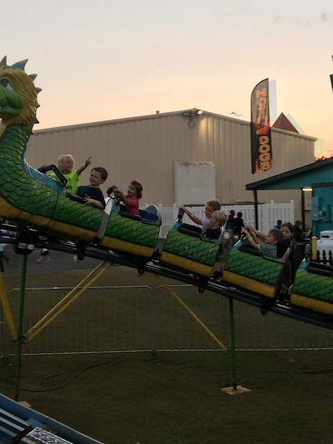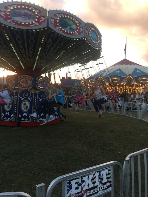 // On Friday, Todd and I picked the kiddos up from school and headed to meet our good friends at the Coastal Carolina FAIR!! I have so many happy childhood memories of the fair, and all those memories come rushing back while watching our kids have so much fun. Carson is just like my brother was as a child, and he doesn’t want to ride anything thing that is too high or that spins too fast.  Taylor, on the other hand, is a mini-me…the higher and faster, the better…ha!