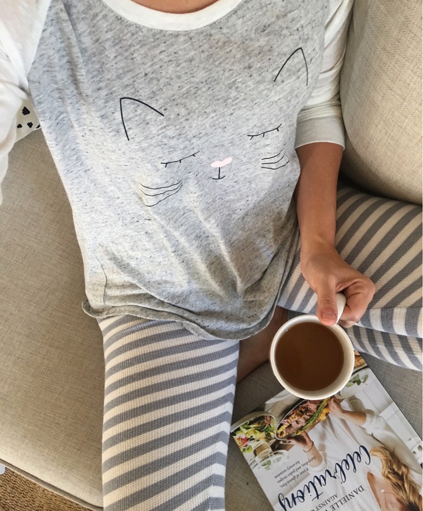 I am in love with these new pajamas I ordered last week! They are super soft, and I just love the fitted bottoms. For sizing reference, they run a little snug in the bottoms. I am wearing a small.