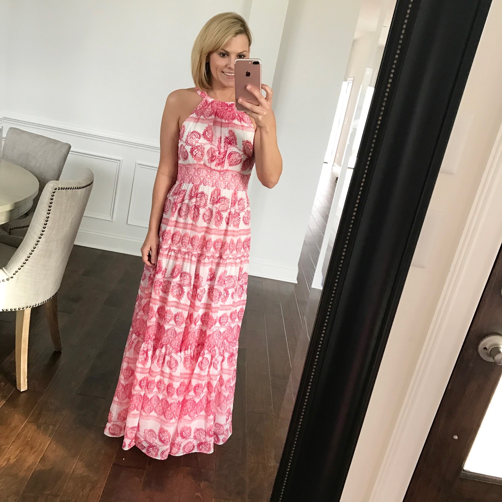 I am very excited about this dress for the trip. You guys I know I love a good maxi, and the fact that this one is floral and pink is just icing on the cake! It runs tts and I’m wearing the 2P.