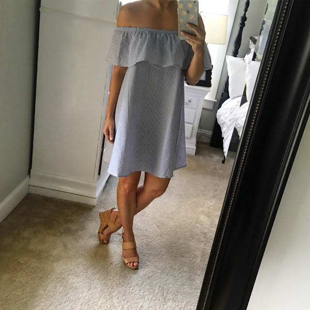 1. Love the off the shoulder look right now. That seersucker dress is precious!